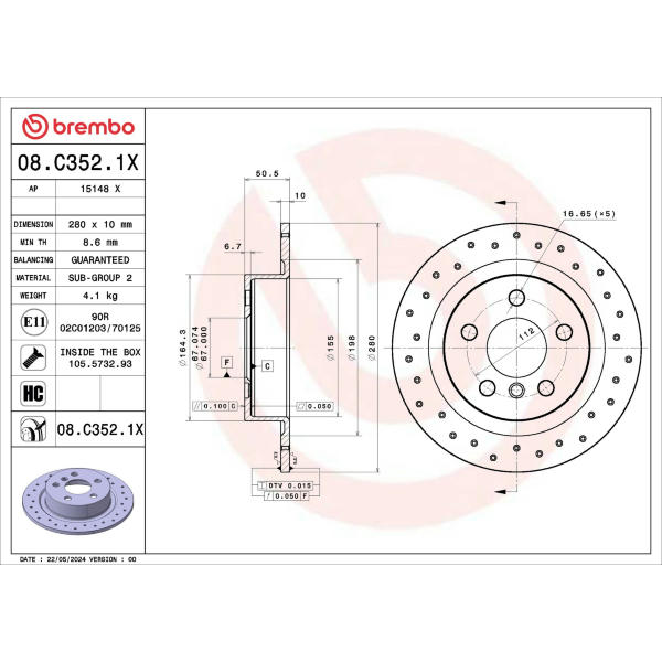 Brzdový kotouč BREMBO 08.C352.1X