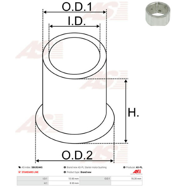 Pouzdro, hřídel startéru AS-PL SBU9244S