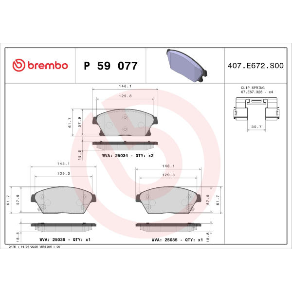 Sada brzdových destiček, kotoučová brzda BREMBO P 59 077