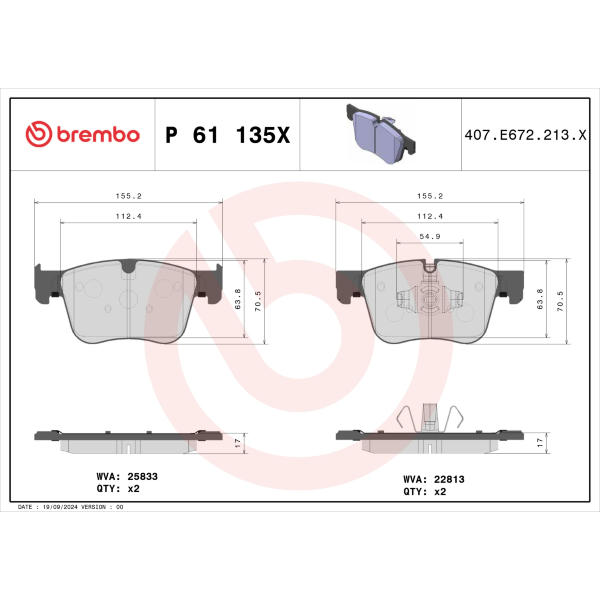 Sada brzdových destiček, kotoučová brzda BREMBO P 61 135X