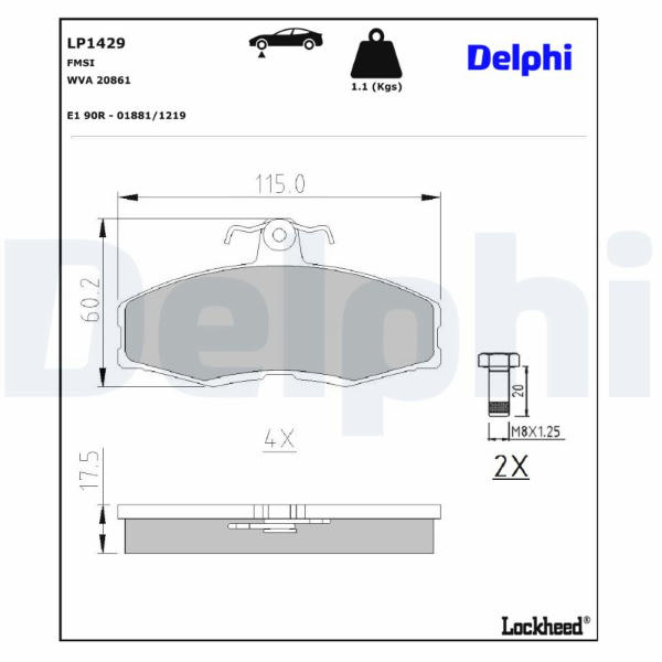 Sada brzdových destiček, kotoučová brzda DELPHI LP1429