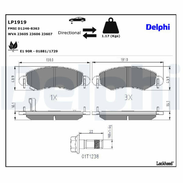 Sada brzdových destiček, kotoučová brzda DELPHI LP1919