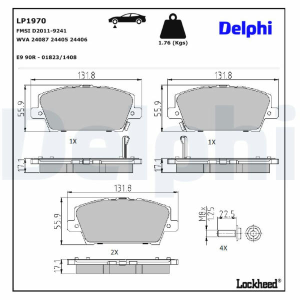 Sada brzdových destiček, kotoučová brzda DELPHI LP1970
