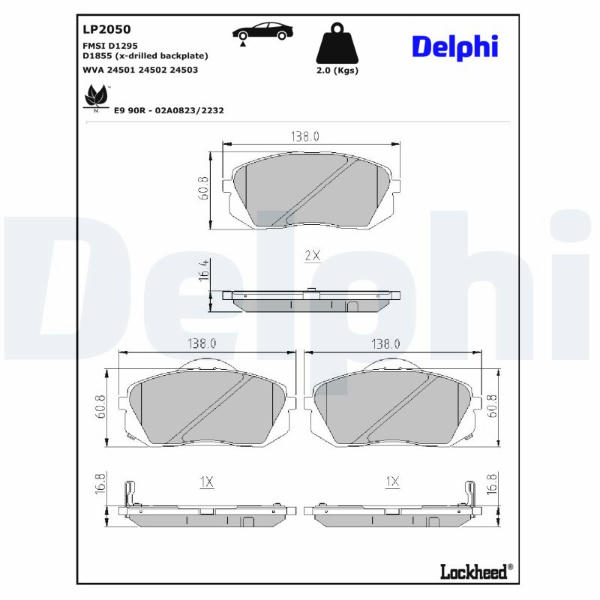 Sada brzdových destiček, kotoučová brzda DELPHI LP2050