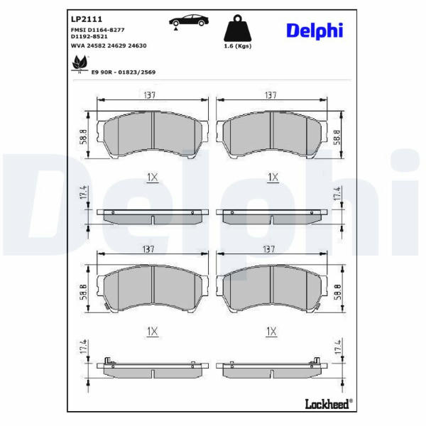 Sada brzdových destiček, kotoučová brzda DELPHI LP2111