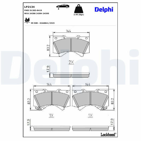 Sada brzdových destiček, kotoučová brzda DELPHI LP2134