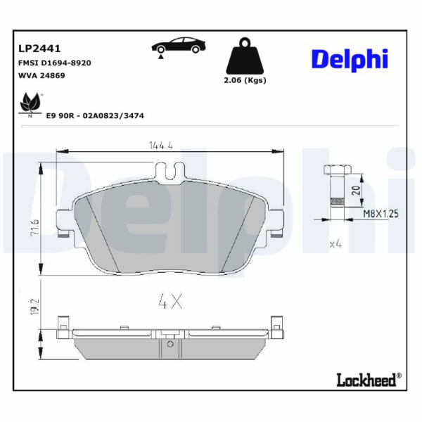 Sada brzdových destiček, kotoučová brzda DELPHI LP2441