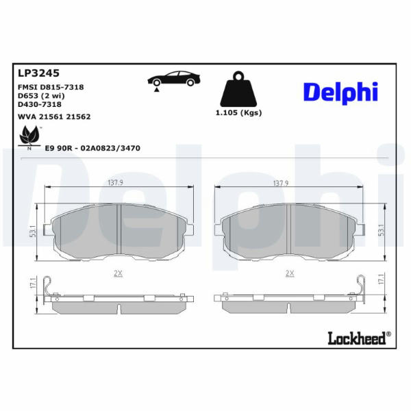 Sada brzdových destiček, kotoučová brzda DELPHI LP3245