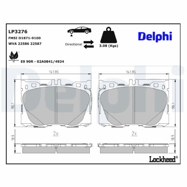 Sada brzdových destiček, kotoučová brzda DELPHI LP3276