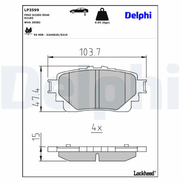 Sada brzdových destiček, kotoučová brzda DELPHI LP3599