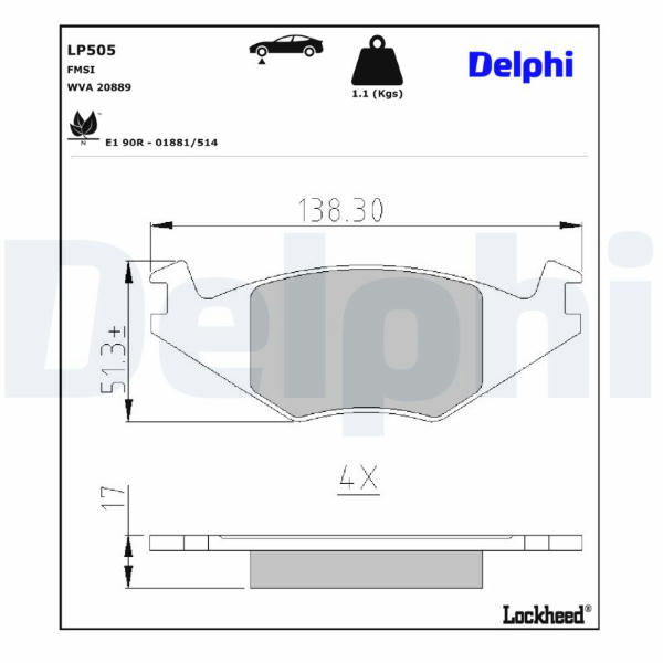 Sada brzdových destiček, kotoučová brzda DELPHI LP505
