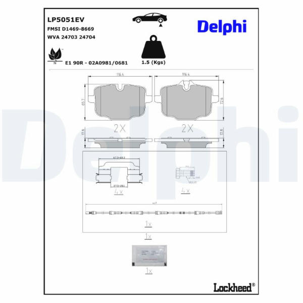 Sada brzdových destiček, kotoučová brzda DELPHI LP5051EV