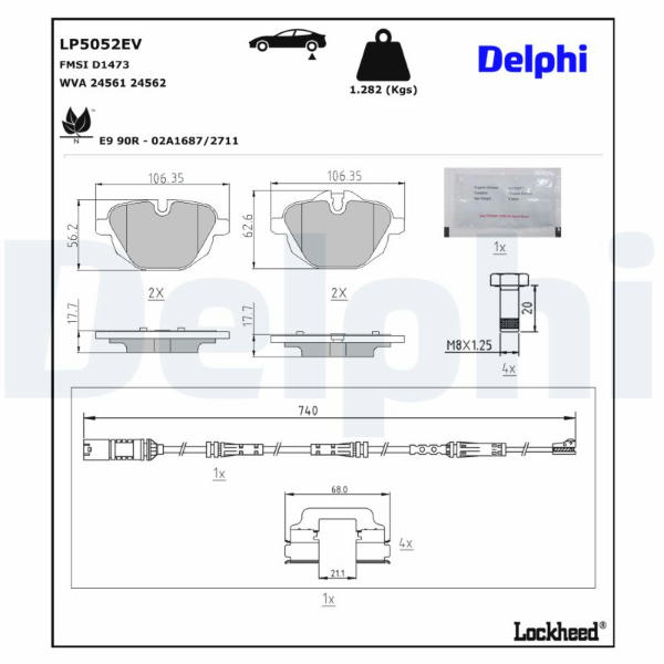 Sada brzdových destiček, kotoučová brzda DELPHI LP5052EV