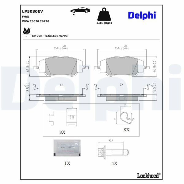 Sada brzdových destiček, kotoučová brzda DELPHI LP5080EV