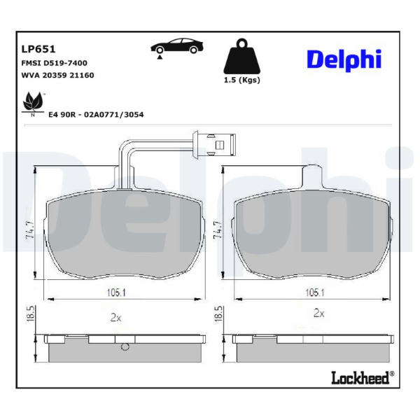 Sada brzdových destiček, kotoučová brzda DELPHI LP651