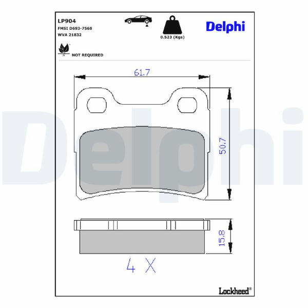Sada brzdových destiček, kotoučová brzda DELPHI LP904