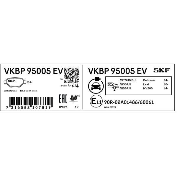 Sada brzdových destiček, kotoučová brzda SKF VKBP 95005 EV