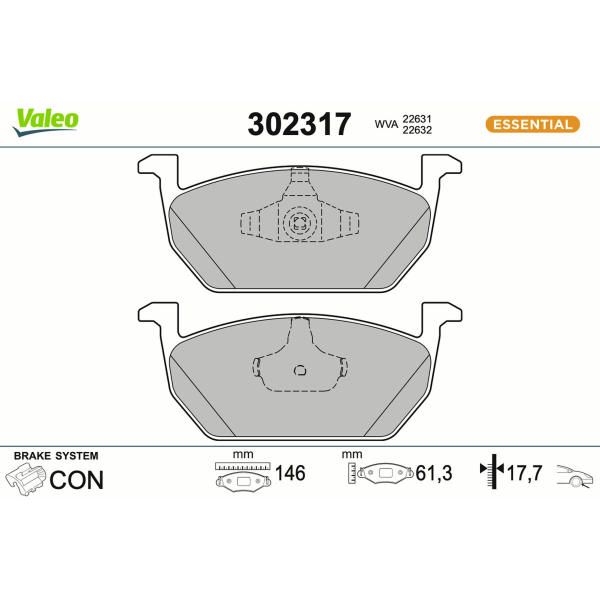 Sada brzdových destiček, kotoučová brzda VALEO 302317
